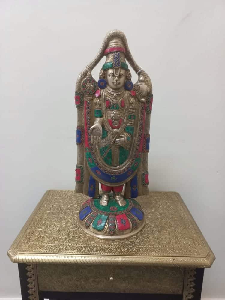 - Designer Decorative: This beautiful Standing Tirupati Balaji Statue comes with fine stones studded handmade feature. Tirupati Balaji is known for blessings and good fortune. This is a popular decorative piece that is found in many Home décor and makes for a best gifting option.